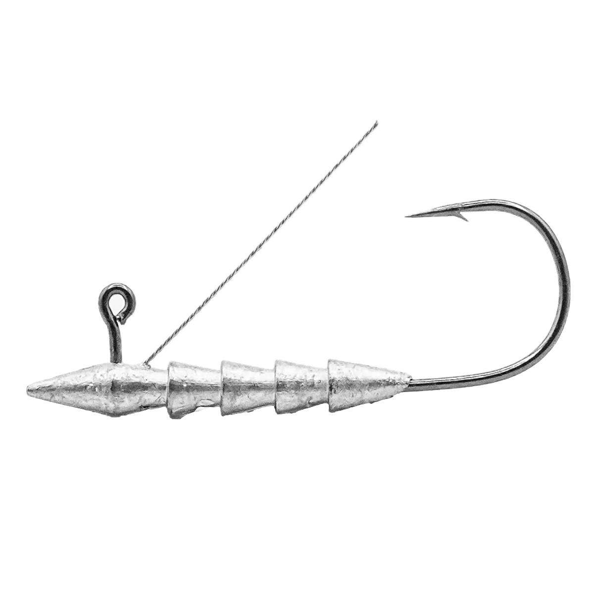 Ideal for finesse presentations when fish are highly pressured or are more lethargic, the Core Tackle Weedless Hover Rigs allow for internal rigging of soft plastics, ready to gain the competitive edge. By internal rigging the bait, it allows for a more natural fall and gliding action, mimicking the movement of a live baitfish. The lead itself is spread further out along the shank of the hook, causing the bait to be rigged 1/8 to 1/4 inch behind the nose of the bait. This gives the bait a more natural fall and gliding action when compared to the typical weight forward jig head. Its integrated wire weed guard keeps your bait free from debris and other vegetation, keeping your favorite bait ready to fish cast after cast. Made in the USA Lead Hidden Implementation Designed for Use Within Many Soft Plastics Maintains a Natural Gliding Motion.