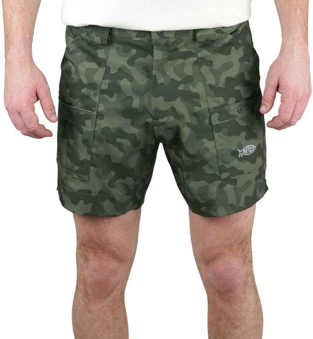 Inspired by the M01 Short, The Camo Fishing Short is great for all anglers. Made with a comfortable and durable poly, elastane ripstop dobby material. The same durability as the AFTCO original fishing shorts. Treated with stain resistance and strong two-way fabric. including many pockets such as a pliers pocket lined with Codura. Features:95% polyester, 5% elastane ripstop dobby Stretch elastic waistband with zipper fly7 functional pockets2-way stretch fabrics DWR16" outseam, 6" inseam.