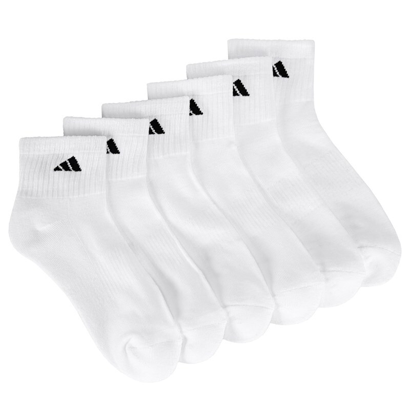 Get all-day comfort in the Men's adidas 6 Pack Athletic Ankle Socks. 97% Polyester 3% Spandex. Cushioned in the foot for comfort and durability. Moisture-wicking yarns keep feet dry from sweat. Arch compression for a secure fit. 6 pairs of ankle socks. Fits men's shoe size 6-12.