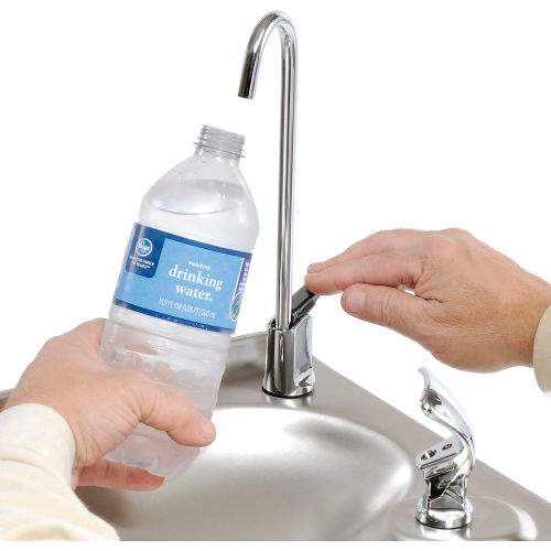 Universal 96852CA Glass Filler Kit can be added to most drinking fountains. Kit includes mounting hardware, adapters, fitting, tubing, and gooseneck spout. Requires 3/4" hole punched in basin.