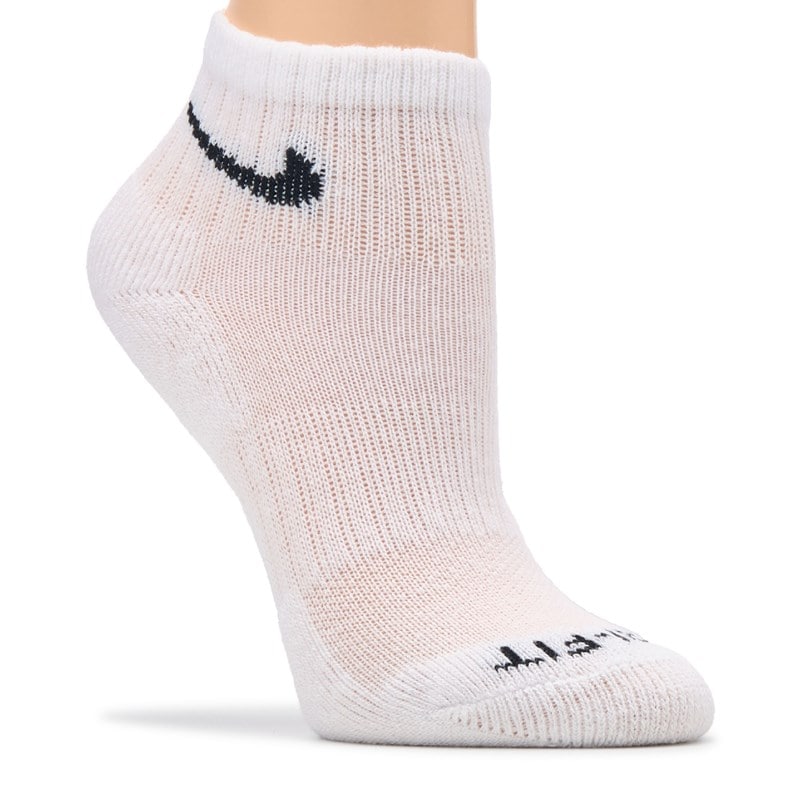 From playtime to game day the Kids' Nike 6 Pack Youth X-Small Performance Ankle Socks keep you going. 75% cotton/21% nylon/2% spandex/2% polyester. Dri-FIT technology helps you stay dry and comfortable. Cushioning underfoot means targeted comfort. Breathable mesh at the top helps feet stay cool. Fits kids' shoe size 10-3.
