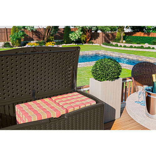Buy Suncast Resin Wicker Outdoor Storage Deck Box Gallon 26-3/4"L x 27-1/2"W x 26-1/4"H Java for $129.95 at @ Globalindustrial.com