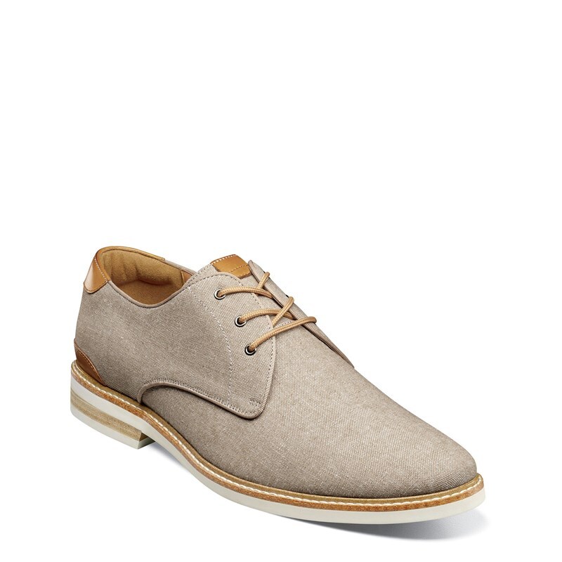 Men's Florsheim Highland Medium/Wide Canvas Plain Toe Oxford Canvas upper in a dress oxford style with a round plain toe. Lace-up closure. Soft lining with cushioned insole. Midsole with contrast stitching. Durable rubber outsole.