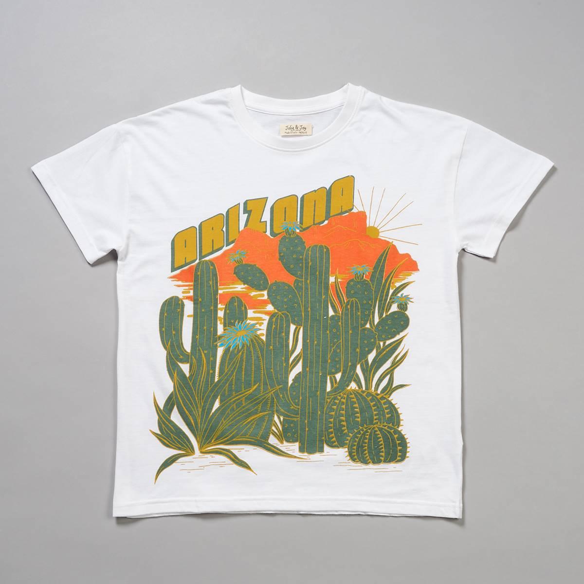 Pattern: Solid Sleeve Length: Short Sleeve Embossed 3D style "ARIZONA" text Large cacti with a mountain background & sun graphic A fun graphic tee great for staying cool or creating layered looks.
