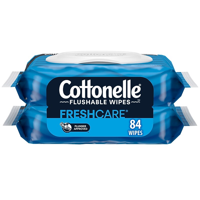 Cottonelle Flushable Wet Wipes are 100% flushable and are the only flushable wipes endorsed by a WasteWater Utility (JEA). This contains 2 flip-top packs of Cottonelle flushable wipes with 84 total wipes. Designed for toilets and tested with plumbers, Cottonelle flushable wipes begin breaking down immediately after flushing and are stored in resealable packs to preserve freshness and moisture. Ideal for everyday hygiene or potty training toddlers, Cottonelle Flushable Wet Wipes provide freshness you can feel with Cleaning Ripples and Cleansing Water for a Complete Clean. Fibers are 100% biodegradable, free of plastic, sewer-safe and septic-safe. Alcohol-free, paraben-free, dye-free with no harsh ingredients provide a refreshingly clean experience when paired with Cottonelle CleanCare, ComfortCare, or GentleCare toilet paper. Contains 2 flip-top packs of 42 flushable wet wipes per pack (84 total wipes). 100% flushable The only flushable wipe endorsed by a WasteWater Utility (JEA). Plastic-free & made with water & renewable plant-based fibers. Alcohol-free, paraben-free, dye-free, no harsh chemicals. Sustainably Sourced from responsibly managed forests. Use with any Cottonelle or Scott toilet paper to feel shower fresh. Stock restrooms with Cottonelleflushable cleansing cloths.