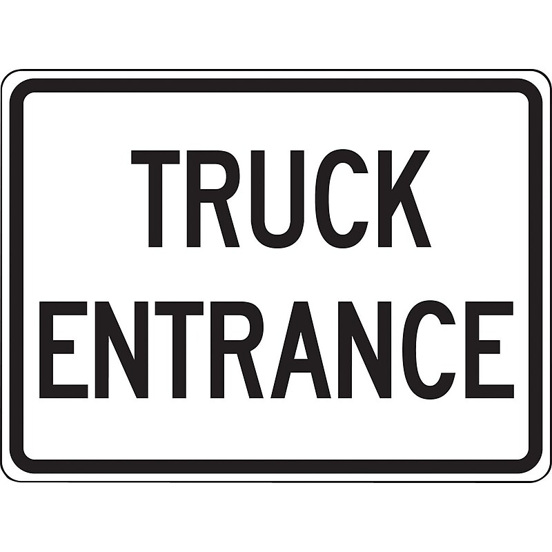 Accuform Signs Facility traffic sign has"TRUCK ENTRANCE" text on a highly visible white background. Aluminum sign is available with top and bottom center holes to support for post or fence mounting. Traffic Sign. TRUCK ENTRANCE. 080" thick Engineer-Grade Prismatic Aluminum. 24". EA. Engineer-Grade Prismatic reflective sheeting bonded to . 080" thick aluminum. UV-resistant inks prevent fading from outdoor exposure. Supplied with top and bottom center holes for post- or fence-mounting. Guaranteed for 5 years. Complies with MUTCD specifications. Black on white. Size: 18"(L) 24"(W). Engineer grade reflective aluminum. Legend: "TRUCK ENTRANCE". Sign language: English. Facility signs are placed around facilities to make drivers vigilant of what rules to follow while driving or parking on public or private property. Service temperature range: -30 - 200 deg F, outdoor durability: 5 - 7 years. Material has bounce-back reflectivity from any light source, for improved daytime to low-light and night-time visibility. Engineer grade multi-layer protective film over aluminized sheet with micro-glass beads. 7-mil flexible surface printed material. Accuform Signs Reflective Aluminum "TRUCK ENTRANCE" facility traffic sign provides rule to follow for safe driving and is made up of ERGA material for enhanced visibility during low light conditions.
