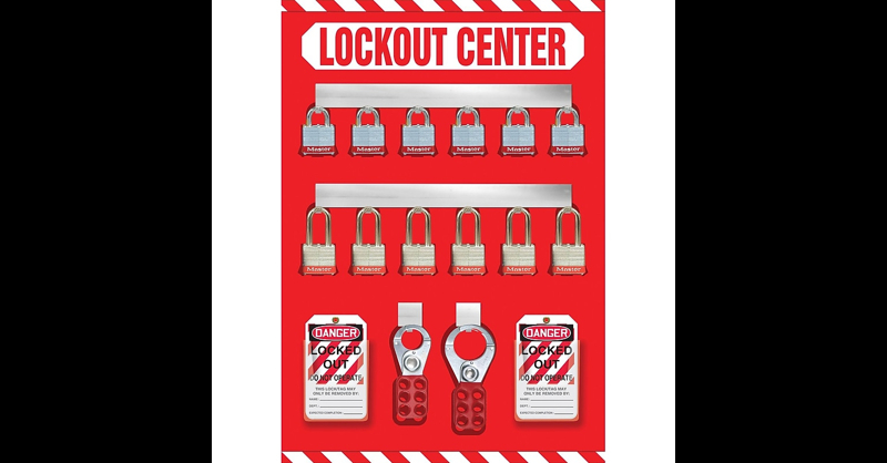 Accuform Signs Lockout Store Board with kit is designed for tough environments and has thick molded construction for durability. Kit contains 12 steel padlocks, 0. 75" shackle, 50 HS laminate lockout tags, 50 plastic ties. Size: 14"(L) x 14"(W) x 2"(H). Plastic ties, steel padlocks. Lockout/tagout devices are shadowed on the storage center so workers can quickly identify that an item is in use or needs to be returned to the designated storage location. A thick, molded, clear, poly pocket measures 4. 75"(H) x 3. 625"(W) x 2"(D) to hold lockout tags and ties. Designed for tough environments. Warranty: 30 days limited. Lockout Store-Board Kit, 12-Padlock. LOCKOUT CENTER. Lockout/Tagout devices are shadowed on the storage center so workers can quickly identify that an item is in use or needs to be returned to the designated storage location. Durable . 063" thick aluminum board has aluminum pronged hooks to hang padlocks and lockout hasps. Kit includes: 6 - Steel Padlocks (keyed differently), 3/4" shackle; 6 - Steel Padlocks (keyed differently), 1" shackle; 50 - HS-Laminate Lockout Tags; 50 - Plastic Ties; 1 - Standard Scissor Hasp, 1" opening; 1 - Standard Scissor Hasp, 1" opening. ⚠ WARNING: Cancer and Reproductive Harm www. P65Warnings. ca. gov. Accuform Signs Lockout Store Board with kit and 12-padlock has clear poly pockets for holding tags and allows the workers to identify if an item is in use or needs to be returned to the designated storage location.