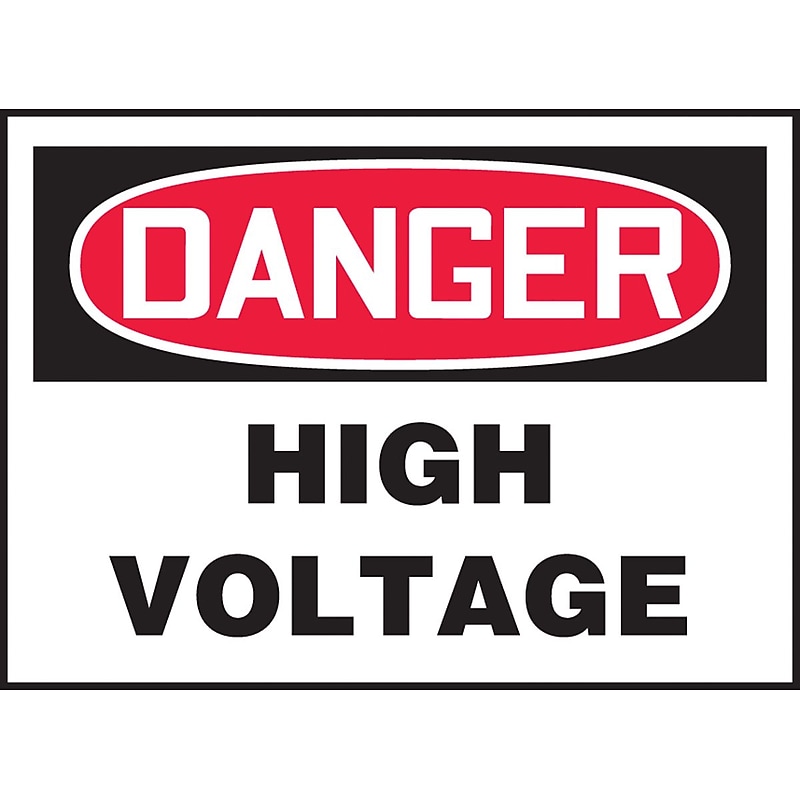 Accuform Signs 3 1/2" Safety label hasblack on white "DANGER HIGH. " text on a highly visible white background. Adhesive vinyl label features square corners and scored backing for quick peel-off application. Safety Label. DANGER HIGH VOLTAGE. 004" thick Adhesive Vinyl. 3" 5". 5/PK. Square corners and scored backing for quick peel-off and application. Printed matte surface with permanent acrylic adhesive. Moisture-resistant. Complies with OSHA 29 CFR 1910. 145 and ANSI Z535 requirements. Red/black on white. Size: 3 1/2"(H) 5"(W). Flexible 4 mil vinyl is for all-purpose labeling use. Adhesive vinyl. Legend: "DANGER HIGH VOLTAGE". Language: English. Permanent acrylic adhesive back with peel-off liner. Vinyl is moisture- and tear resistant. Apply pressure sensitive back to clean curved or uneven surfaces. Accuform Signs 3 1/2" Adhesive vinyl "DANGER HIGH. " safety label features permanent acrylic adhesive back with peel-off liner and is ideal for all-purpose labeling use, sold as 5 per pack.