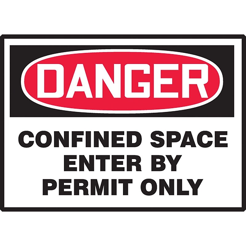 Accuform Signs 3 1/2" Safety label hasblack on white "DANGER. ENT. " text on a highly visible white background. Adhesive vinyl label possess square corners and scored backing for quick peel-off application. Legend: "DANGER CONFINED SPACE ENTER BY PERMIT ONLY". Size: 3 1/2"(H) 5"(W). Apply pressure sensitive back to clean curved or uneven surfaces. 5/PK. Printed matte surface with permanent acrylic adhesive. Square corners and scored backing for quick peel-off and application. Permanent acrylic adhesive back with peel-off liner. Language: English. Safety Label. Warranty: 30 days limited. 004" thick Adhesive Vinyl. Complies with OSHA 29 CFR 1910. 145 and ANSI Z535 requirements. Vinyl is moisture- and tear resistant. Flexible 4 mil vinyl is for all-purpose labeling use. Accuform Signs 3 1/2" Adhesive vinyl "DANGER. ENT. " safety label consists permanent acrylic adhesive back with peel-off liner and is ideal for all-purpose labeling use, sold as 5 per pack.