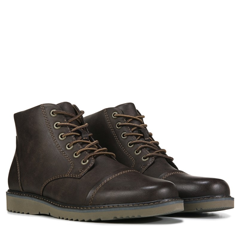 Give your shoe collection a fresh update with the Men's Eastland Patterson Cap Toe Lace Up Boot. Faux leather upper in a lace up boot style with a round toe. Lace up front. Padded collar and tongue. Fabric lining with a Memory Foam insole. Durable EVA outsole.