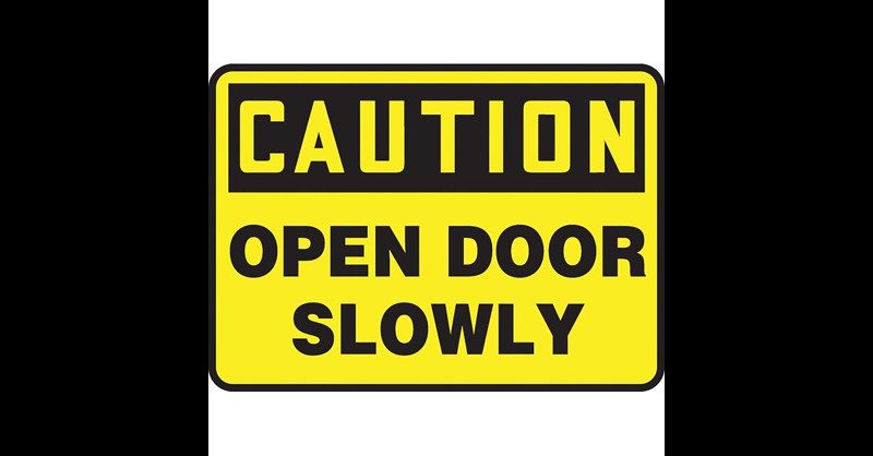 Accuform Plastic Safety Sign "CAUTION OPEN DOOR SLOWLY", Black On Yellow ()