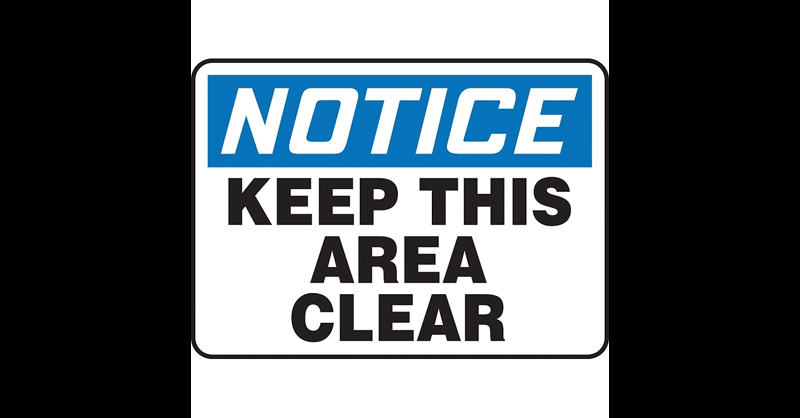 Accuform Vinyl Safety Sign "NOTICE KEEP THIS AREA CLEAR", Blue/Black On White ()