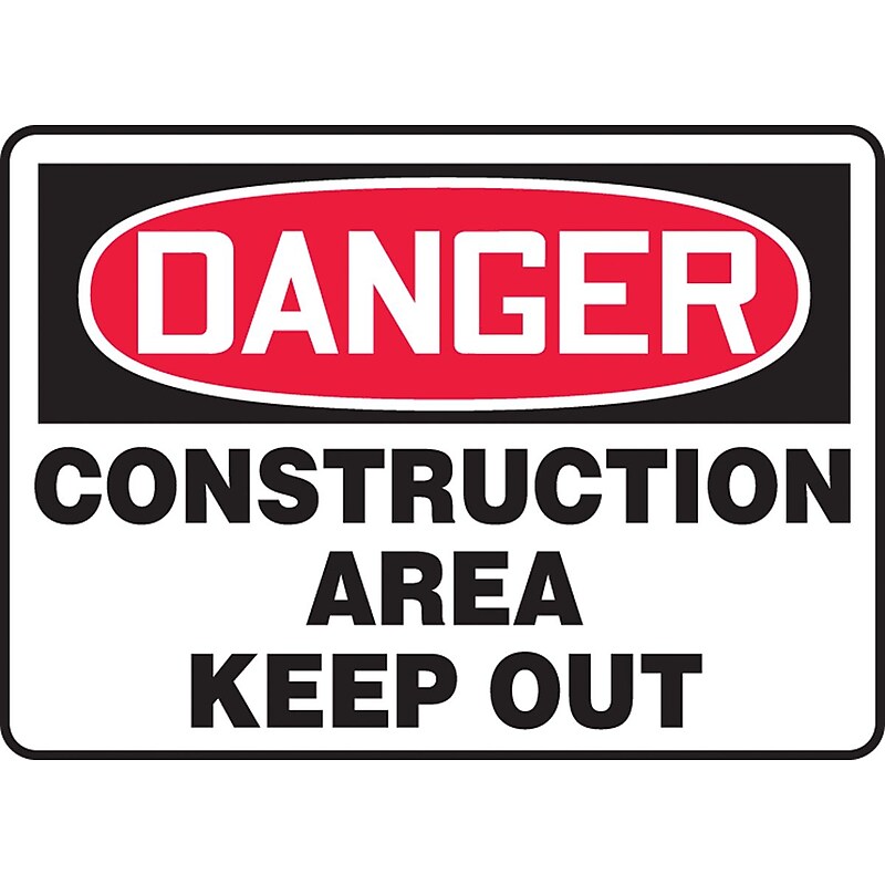Accuform Signs Safety sign has red/black "DANGER CONSTRUCTION AREA KEEP. " text on a highly visiblebackground. Aluminum sign with UV-resistant clear polyester film and rounded corners is ideal for indoor/outdoor use. Safety Sign. DANGER CONSTRUCTION AREA KEEP OUT. 040" thick Aluminum. 10". EA. Rounded corners with 3/16" mounting holes for easy installation. Protected by 2-mil high-gloss, UV-resistant clear polyester film. Guaranteed for 5 years. Withstands splashes, washdowns, outdoor conditions. Complies with OSHA 29 CFR 1910. 145 and ANSI Z535 requirements. Red/black on white. Size: 7"(L) 10"(W). 0. 04" thick aluminum. Legend: "DANGER CONSTRUCTION AREA KEEP OUT". Package: Each. Sign language: English. Mounting type: Wall. Service temperature range: -40 - 250 deg F. Rounded corners with 0. 1875" mounting holes for easy installation. Withstands splashes, washdowns, and outdoor conditions, harsh elements, abusive conditions. Accuform Signs Aluminum "DANGER CONSTRUCTION AREA KEEP. " safety sign offers easy installation with 0. 1875" mounting holes and is used to indicate potential, type or degree of the hazard.