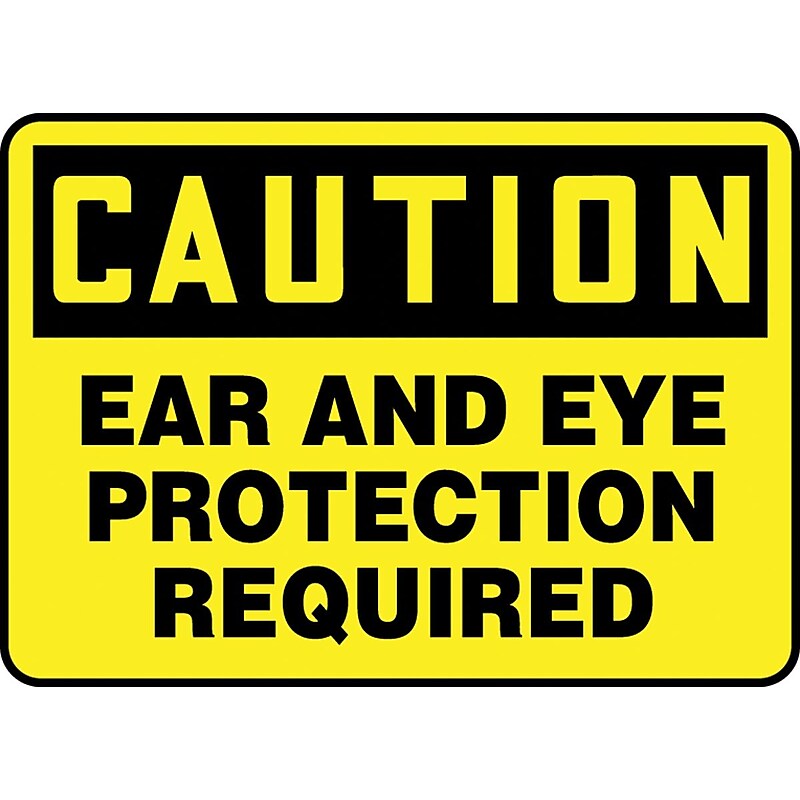 Buy Accuform Vinyl Safety Sign "CAUTION EAR AND EYE PROTECTION..", Black On Yellow () for $15.39 at @ Megadepot.com