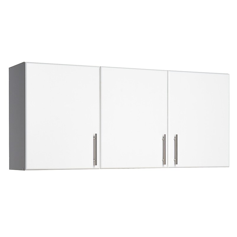 Prepac Elite 54"all cabinet is constructed from CARB-compliant laminated composite woods with dimensions of 54" x x 12". Cabinet has freshlaminate finish and European-style 6-way adjustable hinges. White laminated composite wood and a sturdy MDF backer construction. Doors feature high quality, European style 6 way adjustable hinges. Dimensions: 24"(H) x 54"(W) x 12"(D). 3 adjustable shelves. Weight capacity: 20 lbs. per shelf. Assembly required. 1" thick worktop with a durable melamine surface, stylish brushed metal handles. Finished in durable laminate. MDF doors with profiled (rounded) edges add a level of sophistication. 54" width fits above any standard washer and dryer, 12" depth leaves more clearance above washer and dryer. Includes an instruction booklet for easy assembly. Mounts directly to wall (not a topper cabinet). Certifications and standards: CARB compliant. Warranty: 5 year limited. ⚠ WARNING: This product can expose you to chemicals including Wood Dust, which is known to the State of California to cause cancer. For more information, go to www. P65Warnings. ca. gov/furniture. Additional information regarding this label can be found at www. prepacmfg. com/Prop65. White 54" wall cabinet has 3 adjustable shelves and MDF doors with profiled (rounded) edges add a level of sophistication.