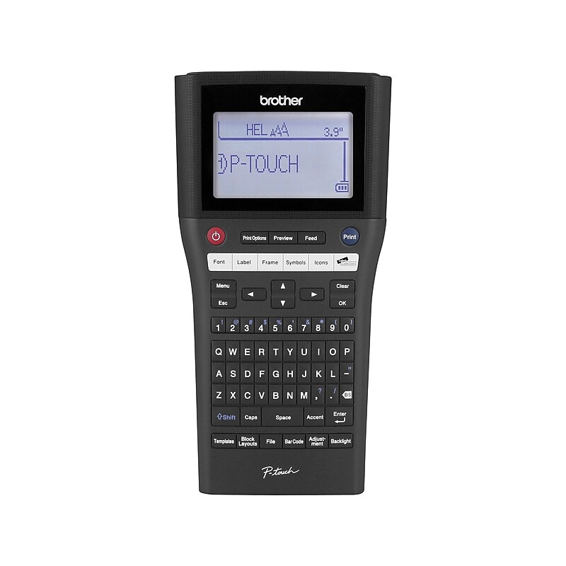 Create various labels for work or home using this rechargeable label maker. Sufficient memory space allows storage of up to 50 different label designs to always have them on hand. This Brother label maker provides fast prints and includes automatic cutting, and easy access to 14 fonts, 8 sizes, and 10 unique styles, making it easy to produce completely customized labels for indoors and outdoors. Label maker for quick organization of items and documents. Maximum print speed up to 1. 18 ips for enhanced productivity. Offers printing with 180 x 360 dpi maximum resolution. Thermal transfer printing technology eliminates the need for ink. Uses TZe tape up to 0. 94" wide. USB for easy and flexible connectivity. 16-character x 3-line graphical LCD display with backlight. Choose from 14 fonts and 10 font styles for user convenience. Connects easily with a USB cable. Dimensions: 3. 5"H x 4. 8"W x 9. 7"D. Works with lithium ion battery. Includes 0. 94" (24mm) laminated starter tape, rechargeable Li-ion battery pack, AC adapter, P-touch Editor software/drivers, and wrist strap. 2-year manufacturer limited warranty. Safety Data Sheet . Print and customize labels easily with this Brother P-Touch label maker.