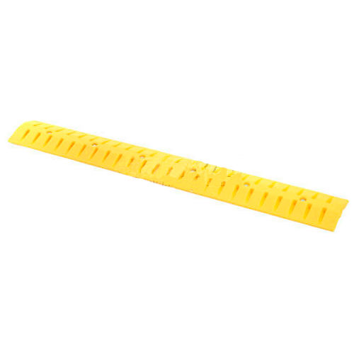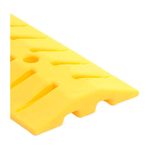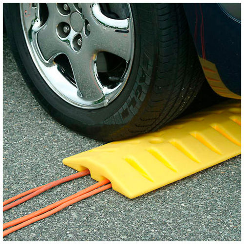 ✓ Weight capacity of 20,000 lbs ✓ Non-skid surface resists weather, UV, and chemical damage ✓ Accepts cords, cables, and various lines The Global Industrial Speed Bump with Cable Protection allows air lines, water lines, and electrical lines to run without the worry of being flattened by vehicles. The versatile design of this speed bump handles the heaviest of vehicle loads while also acting as a dual channel protector. Flexible design fits contour of road or factory floor. The unit is not designed for permanent installation, allowing it to be moved easily from location to location. High-density polyethylene construction with non-skid surface, resists weather, UV, and chemical damage. Anchor bolts included. 72"L x 10"W x 2"H. Cable channel dimensions: 1-1/4"W x 7/8"H.