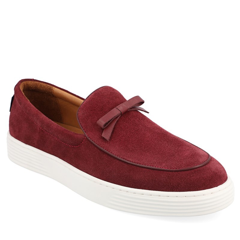 Upgrade your shoe collection with the Model 108 Apron Toe Loafer from TAFT 365. Suede upper in a loafer with a round apron toe. Slip on entry. Smooth leather lining with a cushioned insole. Extra insole for sizing adjustment. Tie detail. Custom TAFT rubber outsole.