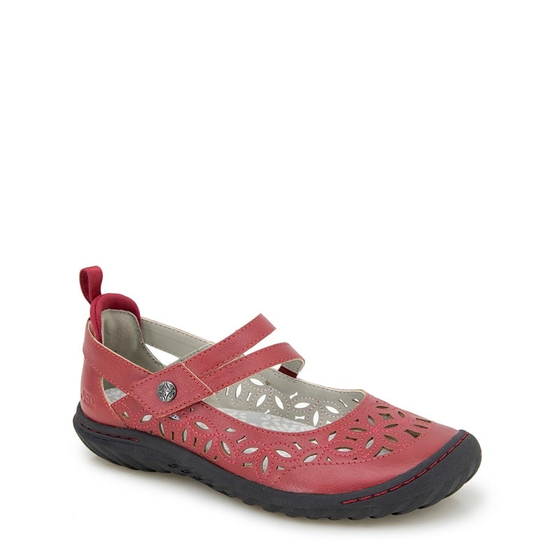 The Women's JBU Bellerose Encore Slip On is the perfect easy breezy style for summer. Faux leather upper in a slip on style with a round toe. Slip on entry. Breathable and stylish perforations on upper. Cushioned memory foam footbed. Durable and flexible rubber outsole.