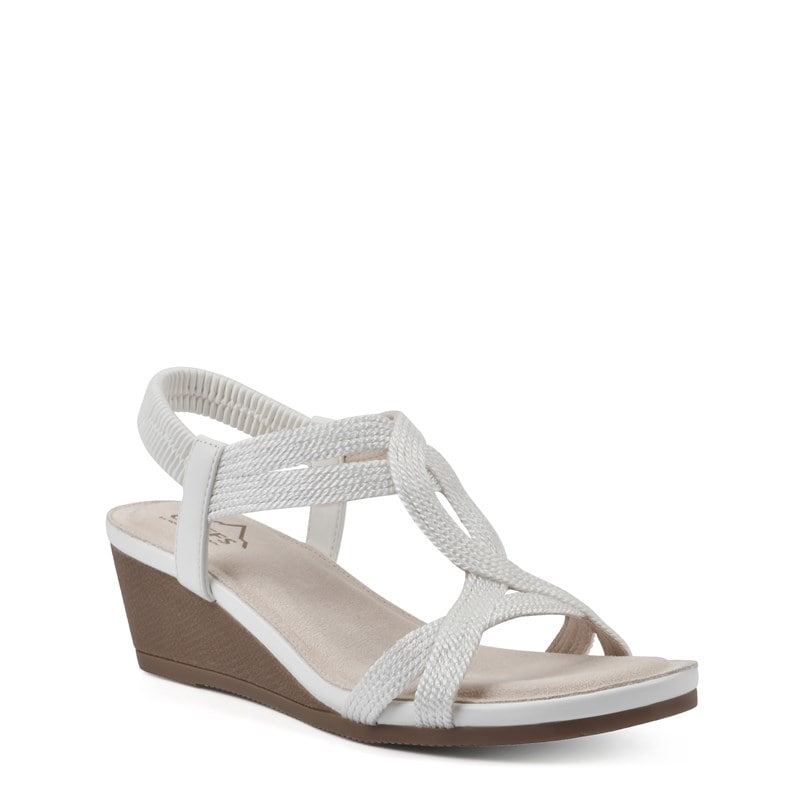 Walk around the city in style in the Women's Candelle Slingback Wedge Sandal from Cliffs by White Mountain. Fabric upper in a slingback wedge sandal with an open round toe. Slip on entry with slingback strap. Smooth lining with a cushioned insole. Durable synthetic outsole. 2.25" wedge.