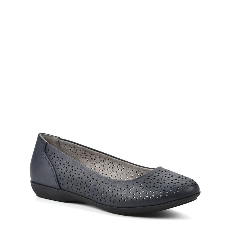 Enjoy summer weather with the Women's Cliffs by White Mountain Cindy Wide Flat. Faux leather upper in a flat style with a round toe. Slip on entry. Perforated design for easy airflow. Smooth lining with a padded insole. Durable synthetic outsole.