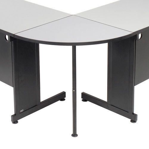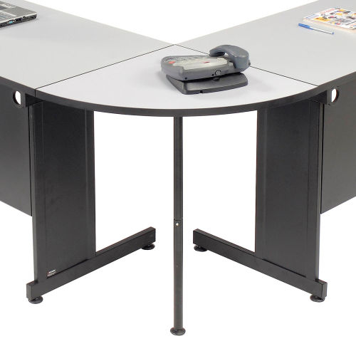 Interion Rounded Corner Tabletop with Support Post, Gray, Radius Interion OFFICE PARTITION FURNITURE Rounded Corner Tabletop with Support Leg This Rounded Corner Connector connects any 2 Desks into an L-shaped workstation. These modular components are made with 1" thick scratch resistant laminate work surfaces and the corner is rounded with a Radius. Includes: 1 Rounded Corner Top, Support Post and all necessary hardware to install and attach adjoining desks. Easy assembly. 1 Year Limited Warranty.