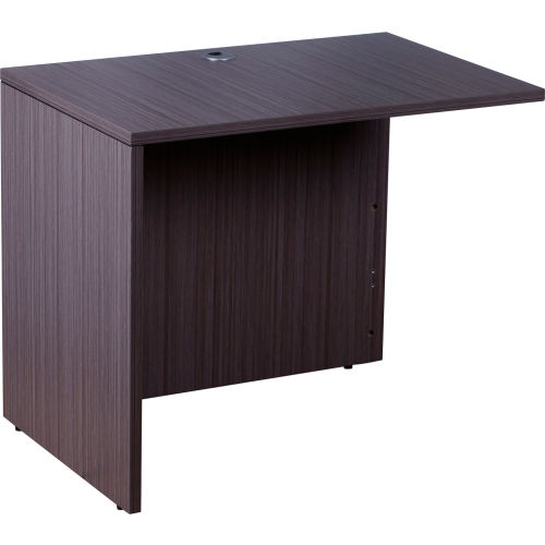 reversible return. Used to connect desk shells and credenza's this unit is functional in either right or left handed applications. The Driftwood laminate is durable yet attractive with 3mm edge banding.