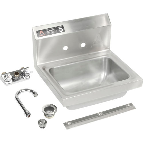Buy Aero Wall Mount Stainless Steel Hand Sink 14"W 10"D With Gooseneck Faucet, Backsplash for $309.95 at @ Globalindustrial.com