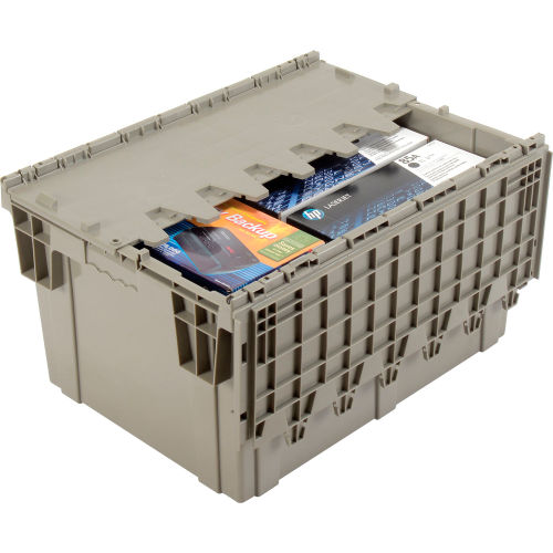 Buy Global Industrial Plastic Attached Lid Shipping & Storage Tote, 28-1/8"x20-3/4"x15-5/8", Gray for $48.95 at @ Globalindustrial.com