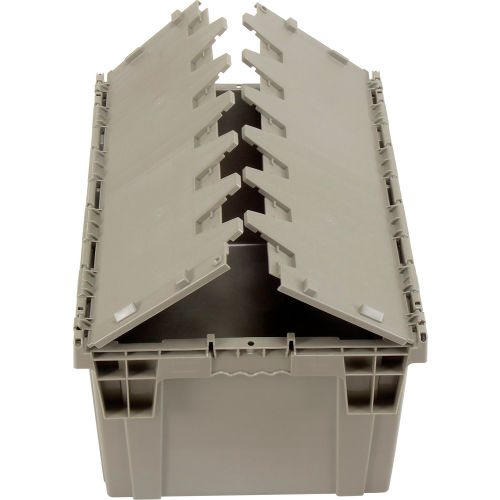 Global Industrial Plastic Attached Lid Shipping & Storage Tote, 28-1/8"x20-3/4"x15-5/8", Gray