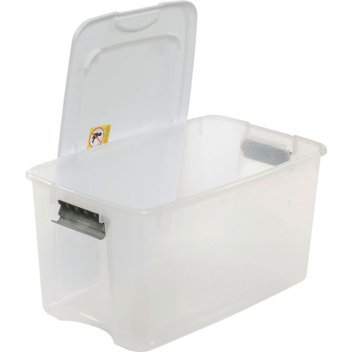 Buy Sterilite Plastic Storage Tote with Lid, Qt. Capacity, 26-1/8"L x 16-1/4"W x 13-1/2"H, Clear - Pkg Qty 4 for $74.00 at @ Globalindustrial.com