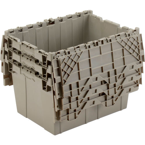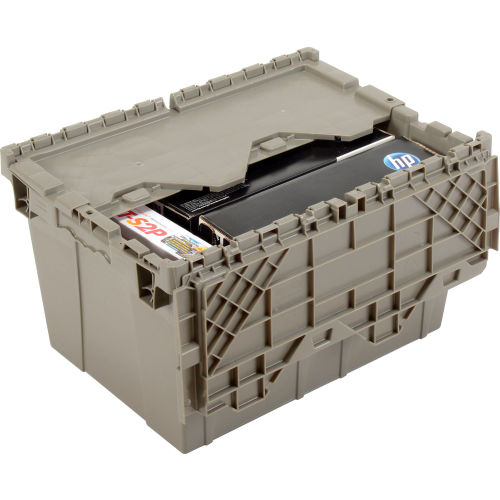 Global Industrial Plastic Attached Lid Shipping & Storage Tote, 21-7/8"x15-1/4"x12-7/8", Gray