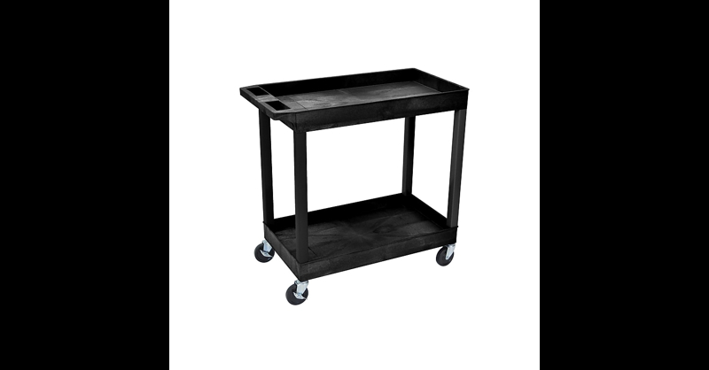Move tools and supplies easily with this Luxortub cart. Made of high-density polypropylene and boasting a weight capacity of 400 pounds, this cart is durable and strong. Each tub shelf is 2. 5 inches deep, keeping items in place and preventing them from rolling off. The convenient push handle makes navigating this Luxor two-shelf utility cart simple. Cart provides an easy way to keep your items organized. Black cart is made of polyvinyl chloride (PVC) legs and high-density polyethylene (HDPE) shelves. Two-shelf tub cart suits warehouses, shops, garages, cafes, or offices. Four 4" full-swivel casters (two with locking brakes) make moving and positioning the cart simple. Dimensions: 34. 25"H x 35. 25"W x 18"D. Assembly required. Supports up to 400 lbs. Lifetime manufacturer limited warranty. Transport supplies throughout the building with this Luxortwo-shelf utility cart.