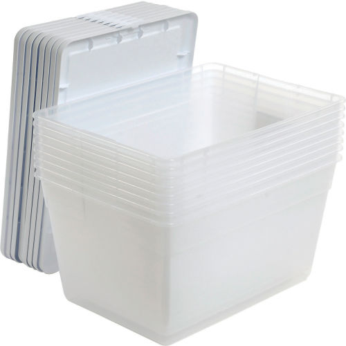 Buy Sterilite Plastic Storage Tote with Lid, Qt. Capacity, 23"L x 16-1/4"W x 12-3/8"H, Clear - Pkg Qty 8 for $138.00 at @ Globalindustrial.com