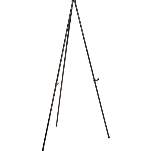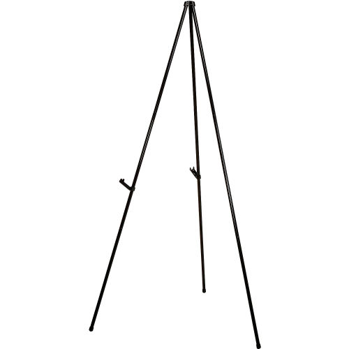 Global Industrial Portable Easel Stand Heavy Duty Instant Collapsible Tripod, Black, Aluminum Portable Display Easels are easy to set up and fold conveniently for storage and transport. Easel can support up to 15 lbs. Collapses to 22 inches and easily fits into a briefcase or carry bag Sturdy Aluminum Construction Adjustable plastic chart supports No-skid rubber feet Easel Height: 63.5"H.