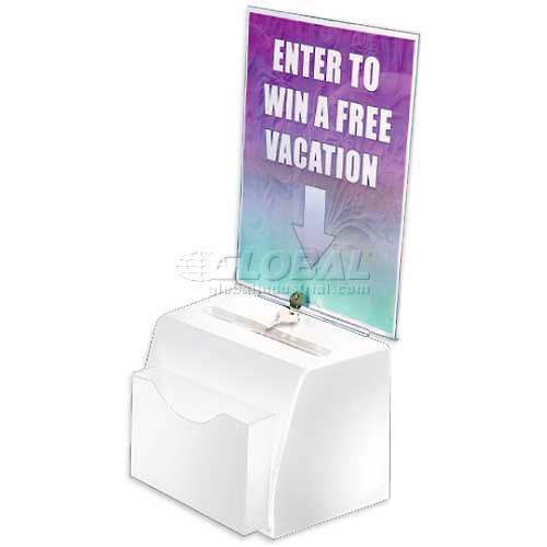 Buy Global Approved Small Molded Suggestion Box W/ Pocket Lock & Key, White, 3.5", Acrylic for $29.95 at @ Globalindustrial.com