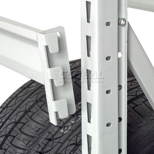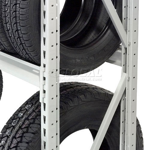 Heavy Duty Tire Rack Add-On Unit Perfect for automobile and larger tractor trailer tires, the additional capacity of these racks comes from the formed horizontal Z-beams. Sturdy units do no need to be attached to walls. Boltless design allows horizontal beams to install easily without tools and to adjust in seconds at 2" increments. Heavy-duty 12-gauge beam connectors have 3 hooks at each end for positive connection. Uprights are 14-gauge steel measuring 1-3/4" x 1-3/4". Built for Tires Only. Gray powder coat finish. Easy assembly. Add-On Units extend Starter Units to create runs of any length.