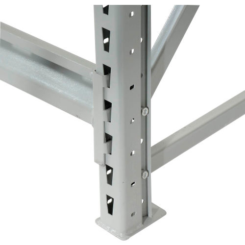 HEAVY DUTY TRUCK TIRE RACK Starter Unit Perfect for automobile through tractor trailer tires. The additional capacity of these racks comes from the formed horizontal Z-beams. Up to 3800 lb. capacity per level. Sturdy units attach to walls using 4 included brackets. Boltless design allows horizontal beams to easily install without tools and adjusts in seconds at 2" increments. Heavy-duty 12 gauge beams have 3 hooks at each end for positive connection. Includes 5 deck supports per level. Uprights are 14-gauge steel measuring 1 " x 1 ". Built for Tires Only. Gray powder coat finish. Easy assembly. Add-On Units extend Starter Units to build runs of any length.