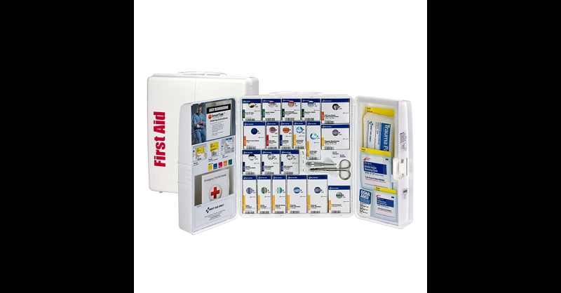 The innovative SmartCompliance Program by First Aid Only redefines business first aid. Three powerful components work together to create the most comprehensive solution available today. The innovative cabinet design eliminates disorganized and missing supplies. Clearly labeled compartments create a cabinet that is easy to use and restock. With the expansion pocket, you can customize your cabinet to meet your specific needs. The Smart Tab ezRefill Systemis a simple but effective system for reordering & restocking and revolutionizes replenishment. It is quick, easy, and cost effective. As supplies are used, Smart Tab ezRefill reminder tabs notify you when it is time to reorder supplies and puts reorder information at your fingertips. Cabinet is OSHA Compliant. Contains 245 pieces sufficient to treat 50 or more people. Plastic cabinet is wall mountable and also has an easy-to-carry handle for quick access in an emergency. SmartTab ezRefill System is a quick, easy, cost effective process for reordering and restocking. Dispenser system reduces pilferage. Consistent color-coded packaging matches ANSI recommendations for easy identification when the user needs to find a first aid supply to treat an injury. Includes over-the-counter medications. 14. 25" x 13. 25" x 4". ⚠ WARNING: This product can expose you to chemicals including nickel which is/are known to the State of California to cause cancer, birth defect, or other reproductive harm. For more information visit lt/ a href="http://www. P65warnings. ca. gov" target="_blank" gt/ www. P65warnings. ca. gov lt/ /a gt/ . This large plastic first aid cabinet is perfect for industrial facilities or large corporate offices.