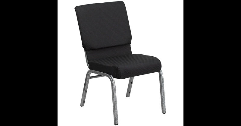 This beautiful, supremely comfortable padded chair will ensure your guests have an enjoyable experience at your next church service or all day seminar. Unlike pew seating, these chairs let you create different seating configurations making them an ideal seating solution for any venue. The upholstered stack chair with seat are generously padded and covered in durable fabric upholstery while the seat has a waterfall edge to reduce pressure on your legs. A convenient book pouch on the back of the chair keeps bibles, hymnals or training manuals readily available. Built-in ganging brackets connect your chairs for nice, straight rows. Its sturdy 16 gauge steel, silver vein frame, with gracefully angled legs, has been tested to hold up to 800 pounds and plastic rocker glides protect your floors. This chair stackable chair is an excellent choice for event venues, hotel lobbies, banquet halls, conference facilities and worship centers. 18. 5" Church Chairs. Color:Silver Vein Frame; Material: Fabric, Foam, Plastic, Steel, Terylene. Overall Dimensions: 19. 25"W x 25"D x 33. 25"H. Seat Dimensions: 18"H x 19"W x 17"D. Back Dimensions: 19. 25"W x 18"H. Rated for up to 800 lbs. Based on 6-8 Hours Use. Care Instructions: X-Vacuum or light brushing to remove dirt. Assembly Required. Meets or Exceeds ANSI/BIFMA Standards; Rated for Commercial Use. Warranty: 5 Years Limited. Multipurpose Church Chair with Book Pouch and Ganging Brackets. 800 lb. Weight Capacity. Stack Quantity: 10. Durable Commercial Grade Upholstery with CAL 117 Fire Retardant Foam. 4. 25" Thick Seat with Pressure Relieving Waterfall Edge. 16 Gauge Steel Frame with Silver Vein Powder Coated Frame Finish. Floor Protector Plastic Rocker Glides protect flooring from damage. Limited Lifetime Warranty on Frame. Ideal for worship centers, auditoriums, event halls, rental businesses. The padded church chair will keep people in your congregation comfortable while arranging seating that best coordinates with your venue or can be used as seating in your hospitality venue.