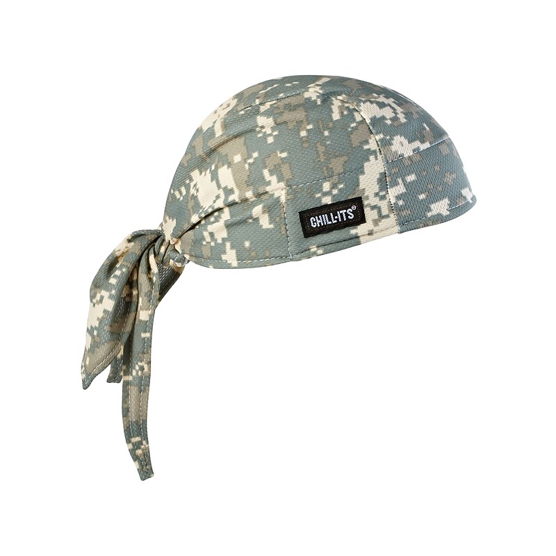 Ergodyne Chill-Its 6615 Camouflage high performance dew rag contains an absorbent terry area and elastic band for maximum performance/wearability. Dew rag is ideal for construction, trade and maintenance. Absorbent terrycloth band. Applications: Construction, trades, maintenance, landscaping/grounds, assembly/fabrication, material handling, freight/baggage, warehousing/distribution, iron/steel fabrication. Hi Cool moisture management performance fabric. Comfortable to wear under hats, helmets or alone. Elastic band for a great fit. Cooling absorptive, hi cool moisture management. Machine washable. Dew rag. Camouflage. One size fits all. Closure type: Tie. Absorbent terry headband. 6 per carton. Ergodyne Chill-Its 6615 Camouflage high performance dew rag is made with hi cool fabric that absorbs as well as removes moisture from the head keeping it cool/dry and is comfortable to wear under hat/helmet or alone.