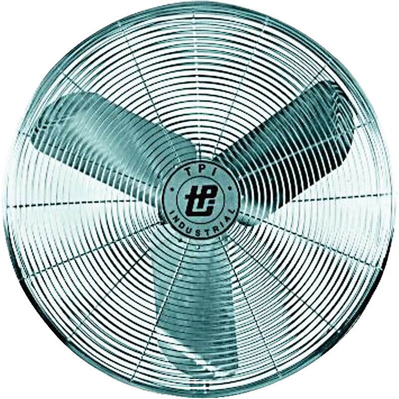 TPI Corporation IHP Fan head in gray color measures 14 1/2" x 27" and comes with 24" aluminum blade, permanent split capacitor and completely enclosed ball bearing motor. Fan head has chrome plated locking wire guards and current rating of 3. 2 A. Gray. Unit size: 14 1/2"(D) x 27"(Dia. ). Permanently lubricated. Blade size: 24". Power capacity: 1/3 hp; Voltage: 120 V; Single phase; Amps: 3. 2 A. No. of speeds: 2. Flow: 5200. 00 CFM (min), 7000. 00 CFM (max). Speed: 800 rpm, 1100 rpm. Cable marking: SJT; Total no. of conductors: 3. Cord length: 12'. Material: Aluminum blade, metal body. Control type: On/off. Totally enclosed ball bearing motor, permanent split capacitor. Chrome plated double locking steel wire guards. Can be used with any of the TPI industrial mounts. Testing and approvals: OSHA, UL. Weight: 40 lbs. Warranty: 3 years. 12' cord length assembled circulator fan head with permanently lubricated, totally enclosed ball bearing motor construction utilises 3. 2 A, 1/3 hp, 120 V single phase supply.