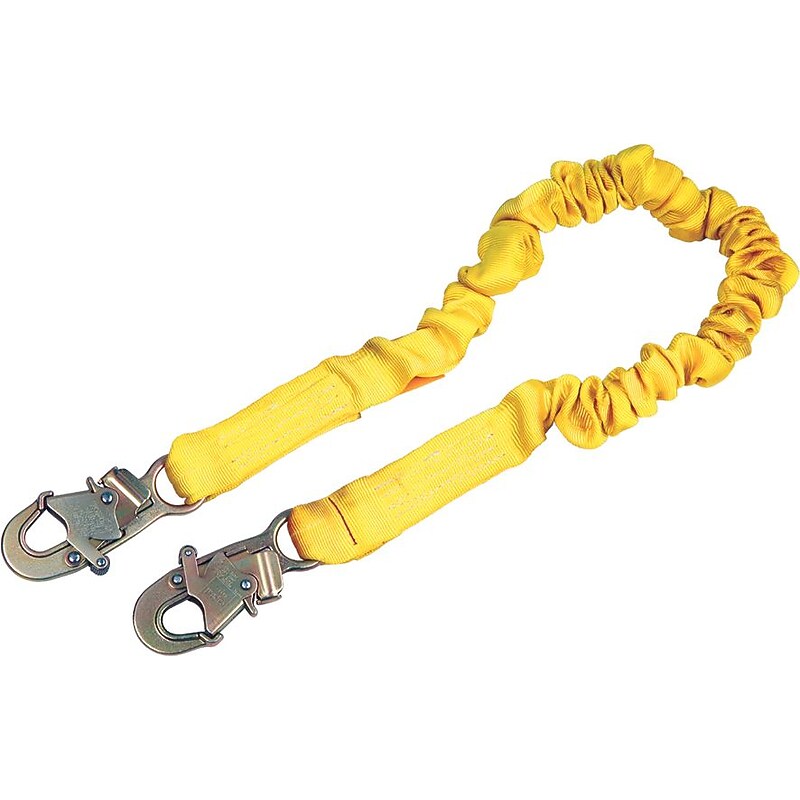DBI/Sala ShockWave2 Shock absorbing lanyard color is made of polyester and has self locking snap hook connection with 3/4" opening. Lanyard measuring 8 3/4" x 6' has a load capacity of lbs. and tongue buckle legs for fastening. Shockwave2 shock absorbing lanyard expands and contracts, with self locking snap hooks at both ends. Material: Polyester. Load capacity: lbs. (max). Length: 6 ft. Connection: Self locking snaps. Width: 8 3 4". Color: Yellow. Fastening method: Tongue buckle legs. Style: Vest. Dimensions: 11. 2"(H) x 8. 7"(W) x 72"(L); Hook opening: 3 4"; Diameter: 1". 6' ShockWave2 shock absorbing lanyards expands and contracts, with self locking snap hooks at both ends.
