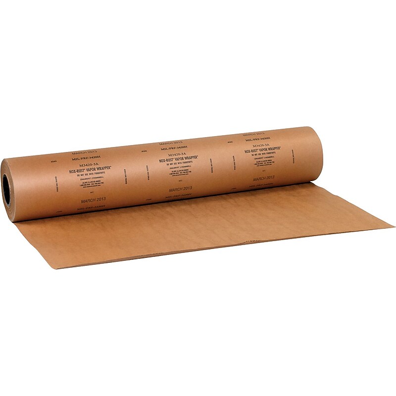 Partners Brand VCI Anti rust industrial paper waxed roll comes with complete wrap for maximum protection against rust, corrosion and oxidation. Paper roll measuring 36" x 200 yds is perfect for covering/wrapping ferrous metal parts or surfaces. 35-lb. paper. 36" x 200 yds. paper roll. Completely wrap for maximum protection. One square foot of VCI paper for every one cubic foot of packaging area is recommended. Chemically treated paper continuously vaporizes creating an environment that blocks out rust, corrosion and oxidation. Use volatile corrosion inhibiting (VCI) paper to cover or wrap ferrous metal parts or surfaces. Heavy duty and nitrate free. Only use with ferrous metals such as iron and steel. Not recommended for use with items containing nickel. Standards and compliance: Meets mil. spec. MIL-PRF-3420. Chemically treated 36" x 200 yds, 35-lb. mil spec VCI paper roll continuously vaporizes creating an environment that blocks out rust, corrosion and oxidation.