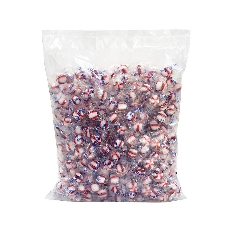 Enjoy these soft peppermint puffs made from pure cane sugar and peppermint oil. Peppermint puffs are individually packaged in a clear wrap for easy eating on the go. With approximately 400 King Leo soft peppermint puffs per 5-pound bag there are plenty of hard candies for filling office candy dishes or using as after-dinner mints in restaurants. Soft peppermint for fresher breath. Weight: oz. Made with real peppermint oil. Made of cane sugar and Red 40. Each mint is individually wrapped for safety. Keep a supply of refreshing, minty treats on hand with these King Leo soft peppermint puffs hard candy.
