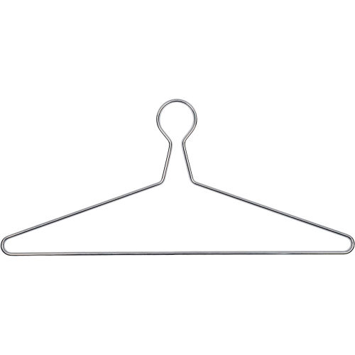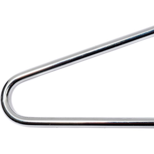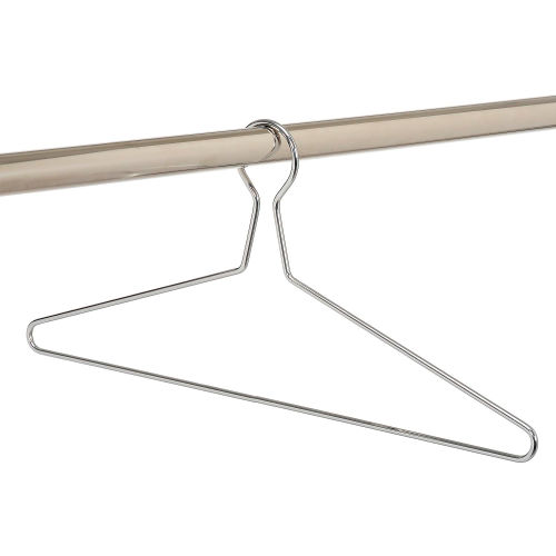 Interion Chrome Plated Hangers, Closed Loop Interion By Global Industrial Coat Hangers are constructed for heavy duty use and feature a closed loop help deter theft. These hangers are ideal for new installation garment racks or racks with removable dowels. Fits rods up to 1-1/2" diameter. Hangers are 17" long. Solid welded steel is durable and long lasting. Hanger is 4.5 mm (0.175") thick and 7 gauge steel. 15 lb. weight capacity per hanger.