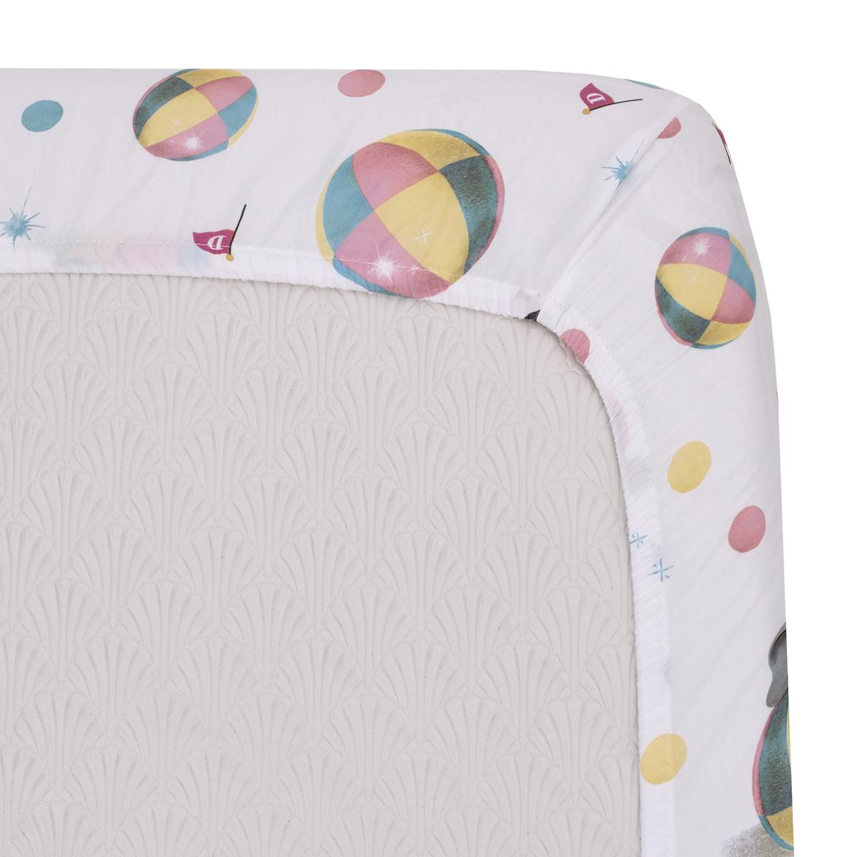 The circus is coming to town with the Disney Baby Vintage Dumbo mini-fitted crib sheet! Features shy little Dumbo balancing on circus balls with circus banners and Timothy Q. Mouse. Includes full elastic edges for a safe and snug fit. Fits a standard-size mini crib mattress.