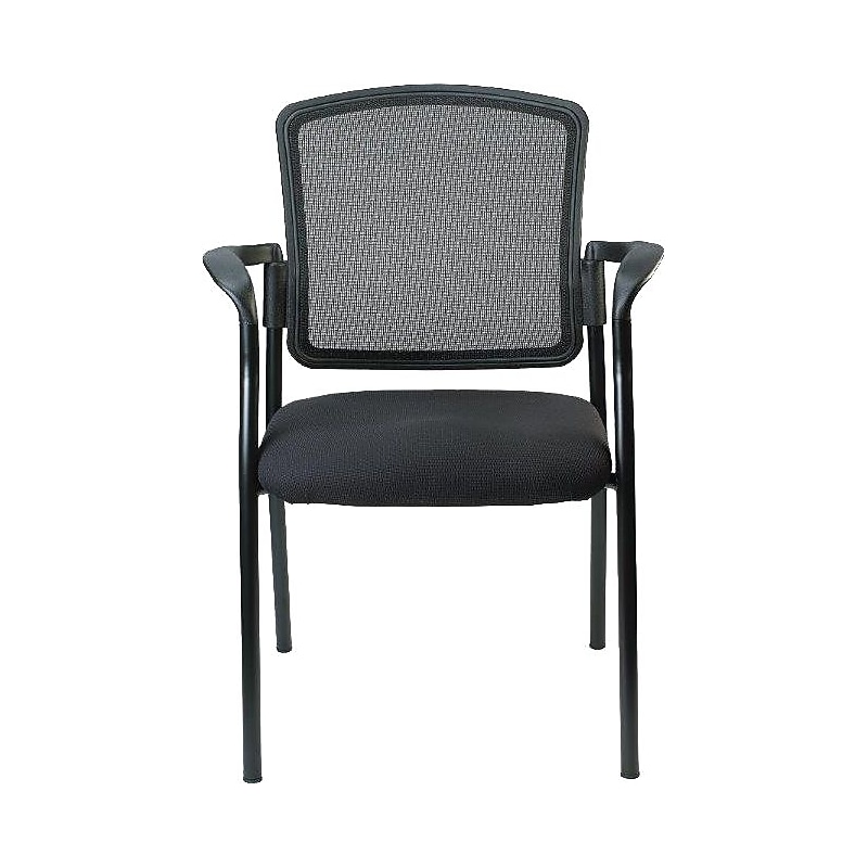 Make the lobby or waiting space comfortable and elegant with the Raynor Guest Chair. With a mesh back and fixed arms, this chair features an ergonomic design. Add a welcome touch to your office waiting space with thisguest chair with fabric upholstery. Strong legs and a steel frame make this chair durable, stable and robust. Guest chair for use in waiting areas and lounges. Black fabric upholstery that not only looks smart but also lasts a long time. Overall Dimensions: 35. 5"H x 25. 5"W x 23. 5"D. Seat Dimensions: 19"H x 18"W x 19"D; Back Dimensions: 17"H x 19"W. Sturdy steel frame ensures stability. Fixed arms offer adequate forearm support. Weight Capacity: Up to 250 lbs. Limited lifetime warranty. Weight rated up to 250 lb not exceeding 40 hrs. per week. Meets or exceeds all ANSI/BIFMA standards. Full assembly required. Color: Black, Vinyl upholstery. Leather or Poly covered integrated arms. 7-ply hardwood back for optimum support and fixed elastomeric straps for the lumbar area. Four-legged base. Dimensions: 35 1/2" H x 25 1/2" W x 23 1/2" D. Seat Size: 19" H x 18" W x 19" D; Back Size: 17" H x 19" W. Weight rated up to 250 lb. not exceeding 40 hrs. per week. The sturdy steel frame construction and functional design of Raynor Guest Chair make this series an ideal all-around seating solution.