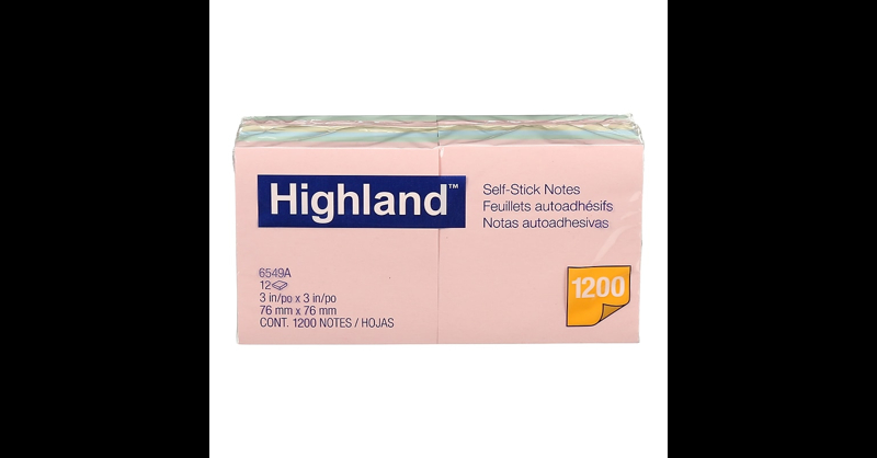 These Highland notes are the perfect size for taking notes, brainstorming, jotting down a message and much more. Leave a note to return a call. 3 in 3 in,Colors. 12 Pads/Pack. Lighten up the message with Pastel colors. Highland Notes are the economical choice for all your messaging needs.