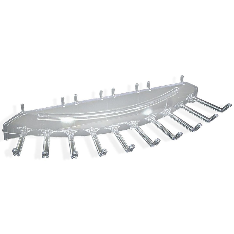 Necklace bar is made fromlexan acrylic material and works with pegboard holes having 0. 25" depth. 16" Bar consists of ten 2" hooks and can be mounted on pegboard or slatwall. Colorful pegboard units to create an eye catching jewelry display. 16"(W), 10 x 2" hooks, 1/4"(D) pegboard holes. Clear. Used for pegboard and slatwall. Lexan acrylic. Includes: Graphic signage holder. Excellent way to showcase several necklaces. Translucentpegboard. 16"(W) x 1/4"(D) pegboard holes. Ten 2" hooks. Azar Acrylic necklace bar is a perfect choice for creating an eye-catching jewelry display and can be used on pegboard or slatwall system.